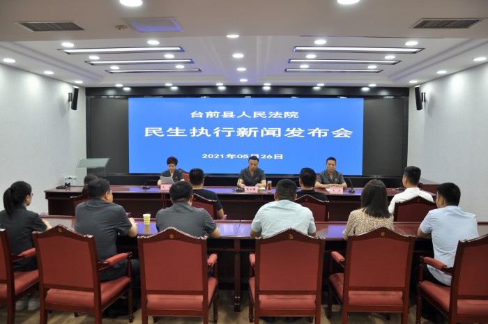 5月26日,台前县人民法院召开民生执行工作新闻发布会,台前县广播电视台、台前融媒等新闻媒体记者、县法院部分部门负责人参加了新闻发布会。该院新闻发言人王勇主持发布会。