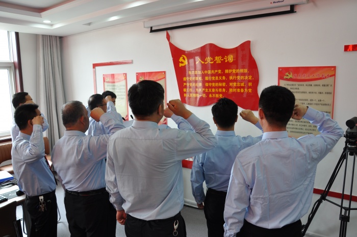 重温入党誓词。在支部书记的带领下,支部全体党员举起右拳,面向党旗,重温入党誓词。在鲜艳的党旗面前,党员们高举右拳,庄严地重温入党誓词:“我志愿加入中国共产党,拥护党的纲领,遵守党的章程,履行党员义务……”誓词虽短,但字字千钧,每个词、每一句都饱含着党员对党的忠诚和对人民的承诺。