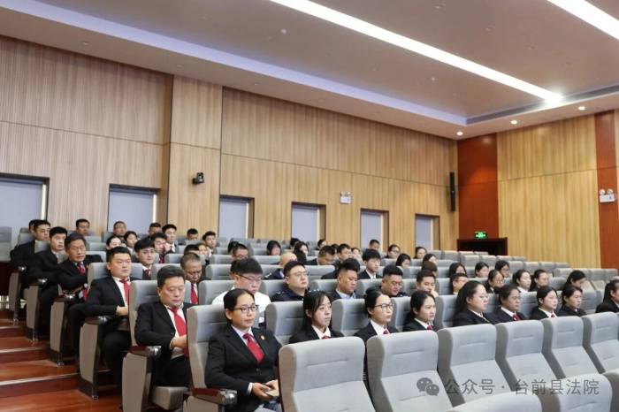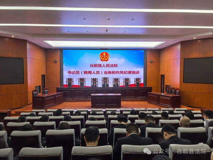 为进一步强化聘用人员和书记员队伍建设,提升业务素能,筑牢纪律防线,激发担当作为,10月11日,台前县人民法院召开聘用人员(书记员)业务和作风纪律教育培训会,党组成员、政治部主任杨贺彬主持会议并讲话。全体聘用制书记员、劳务派遣人员、司法辅警及公益岗人员参加会议。