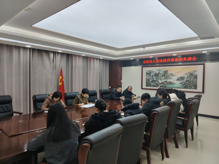 1月9日,台前县人民法院党组成员、副院长马爱玲组织召开刑事审判工作部署会,刑事审判庭全体干警参加会议。