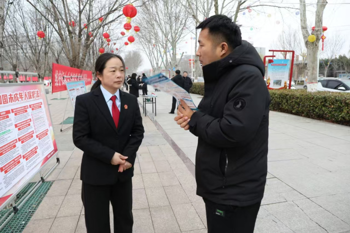 活动现场,干警们化身“法治宣传员”,干警们在现场悬挂宣传横幅、摆放展板,向往来群众精准递送《家庭教育促进法》《妇女权益保障法》《未成年人保护法》等法律读本。针对家暴取证、人身安全保护令申请等高频关切,干警们以真实案例为切口,用乡音土语拆解法律条文,将晦涩法条转化为维权“路线图”。