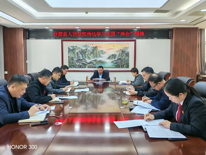 3月27日,台前县人民法院召开党组(扩大)会议,认真传达学习贯彻习近平总书记在全国“两会”期间系列重要讲话精神和全国“两会”精神,贯彻省、市、县委和上级法院部署要求,结合工作实际,研究贯彻落实意见。党组书记、院长郭循利主持会议并讲话。